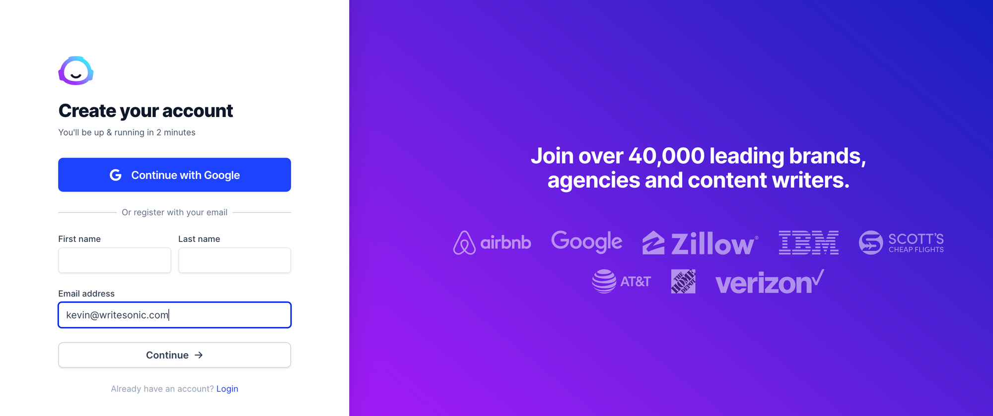 Getting started on Rytr follows a similar process. Clicking on 'Start Ryting' on the Rytr homepage leads you to open an account and join the Rytr family - free of charge.