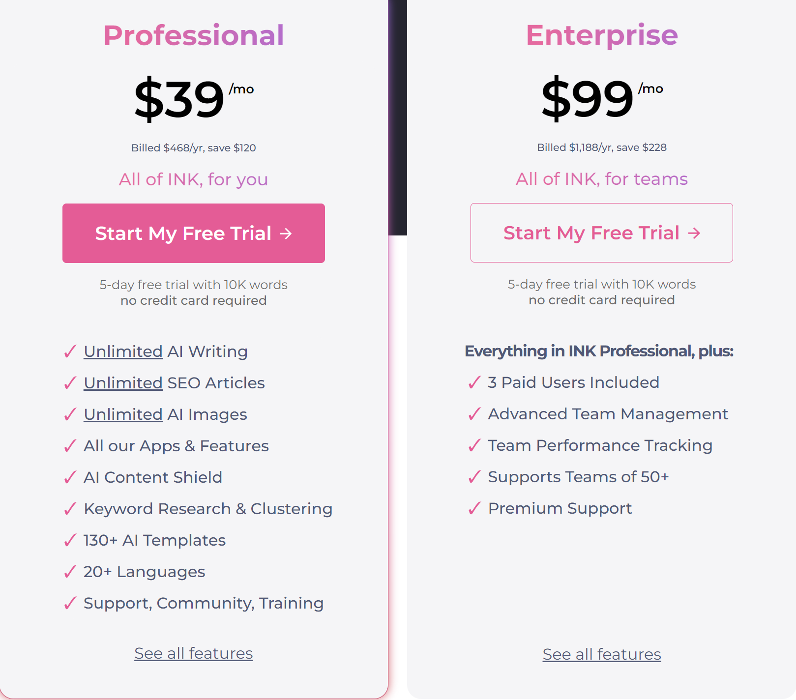 - Comprehensive Toolset: With various features, including AI writing, SEO optimization, and content planning, INK offers a comprehensive solution for content creators.